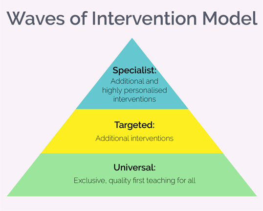 When a child joins Nursery or Reception they are assessed in each area of learning. If your child moves to our school later in their school career, we will contact their previous school to ensure a thorough handover. Throughout their time with us their attainment will be regularly assessed and their progress monitored. We will discuss their attainment and progress with you and make collaborative decisions for next steps which following the 'Waves of Intervention' Model.