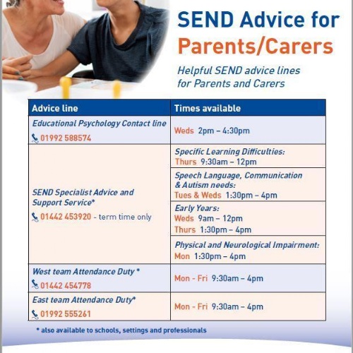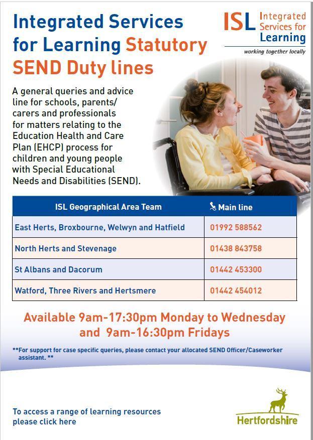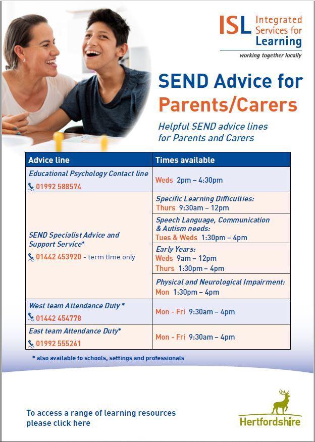 • The school receives and shares information provided by Dacorum Specialist Provision Locally panel and the Dacorum Extended Schools Unit.